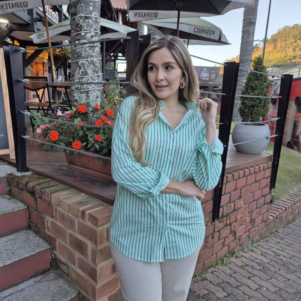 Com caimento leve e design atemporal, esta camisa traduz sofisticação em cada detalhe. Sua modelagem solta garante conforto sem abrir mão da elegância, enquanto o bolso frontal adiciona um toque de modernidade sutil. Uma peça versátil que transita facilmente entre produções casuais e refinadas.